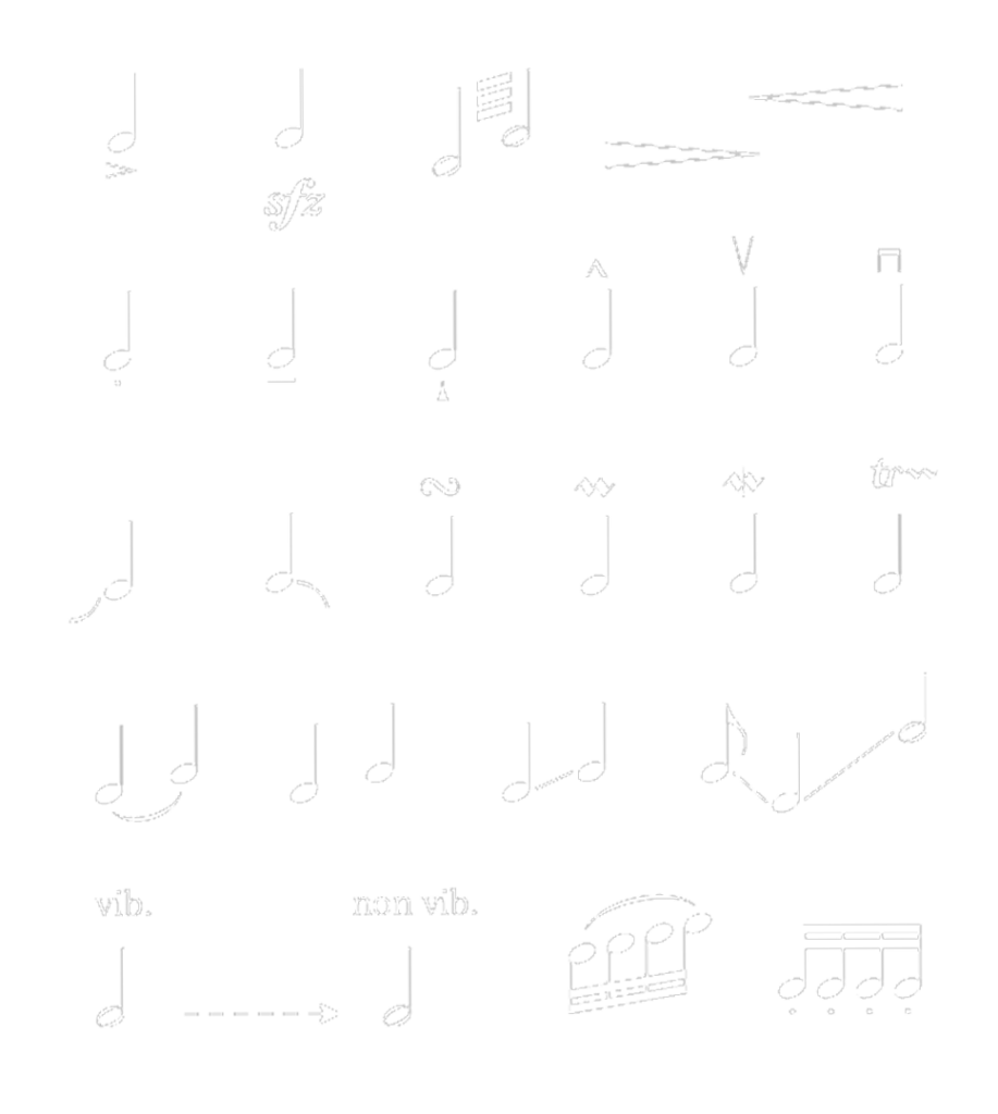 Several playing techniques which can be applied to string instruments (e.g. pizzicato) and some articulations (e.g detaché) are easily recalled by using keyswitches (KS). These KS are placed immediately below the playing range of each instruments. By pressing a KS you can activate microtuning, pizzicato, col legno, harmonics, solo or poly (arpeggio) mode, detaché/bowchange, portato & tremolo, allow open strings and selecting low, middle and high playing position. All the KS are working in real time, either in momentary or latch mode.